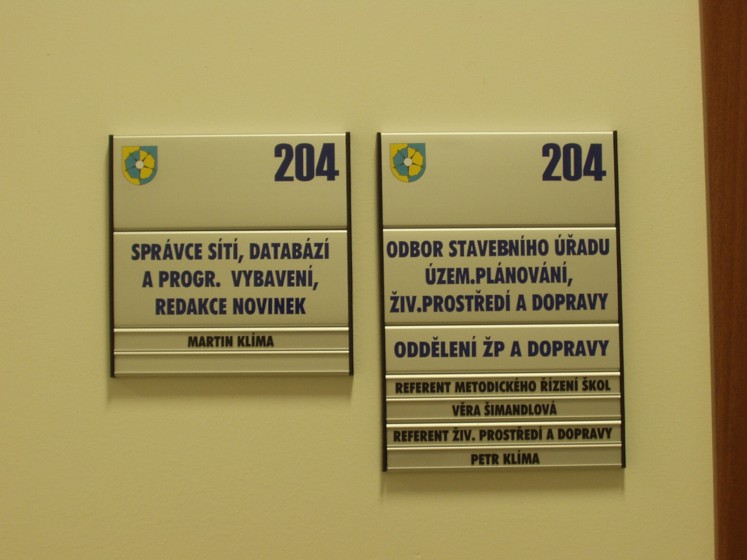 Máme zkušenosti orientačními systémy v celých budovách firem a úřadu.